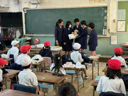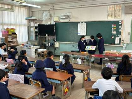 17日(水)図書委員会のメンバーが1年生の学級で読み聞かせを行いました。