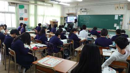 今日は1組、2組が同じ時間に社会の学習をしていました。内容も同じで「戦争の広がり」がテーマでした。