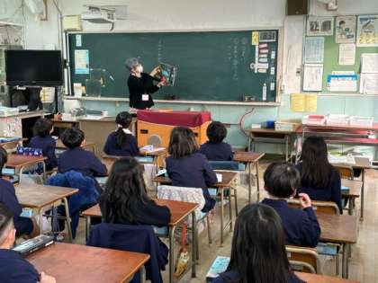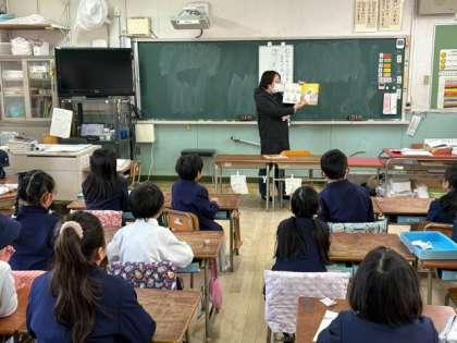 24日(水)図書ボランティアさんの読み聞かせが行われ、1月は1年生と2年生の教室で実施されました。