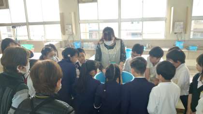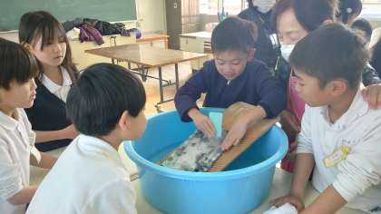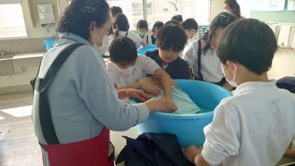 家庭科室では洗濯板を使って、手洗い体験をしました。
