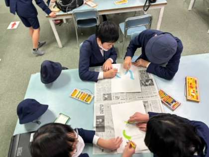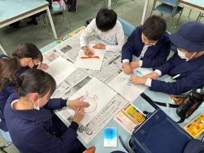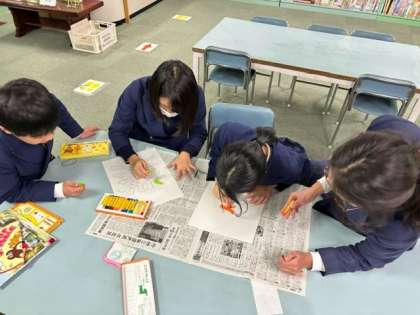 本日の図書委員会のメンバーは、「お別れ集会」改め「6年生を送る会」の看板作成に取り組みました。