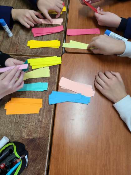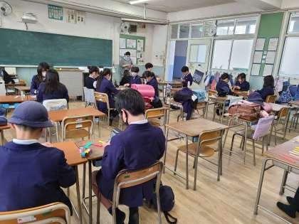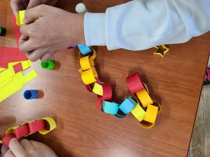 給食委員会では、「6年生を送る会」に向けて飾り作りに精を出していました。