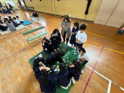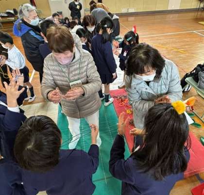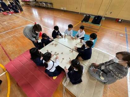 16日(金)地域の方々が2年生に昔遊びを教えに来てくださいました。