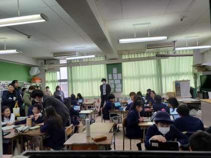 2組は、プログラミング学習でゲーム作りに挑戦しました。保護者の方にも参加してくださり、楽しく学習を進めることができました。