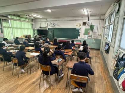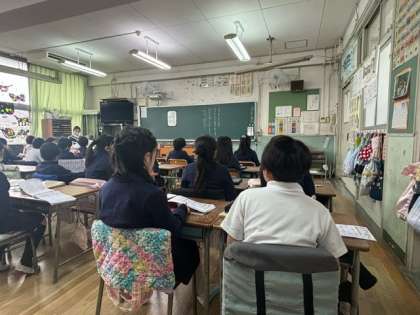 26日(月)子ども達が登校して来た頃に冷たい雨粒が落ちてきていたので、今日の朝は放送朝会を実施することにしました。