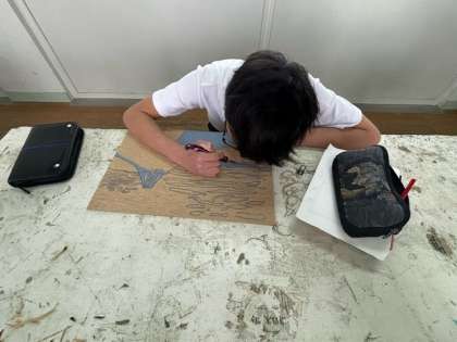 根気のいる作業ですが、丁寧に慌てず作業を進めています。また、課題を終えた子から卒業制作のセロハンテープカッター作りも始めました。