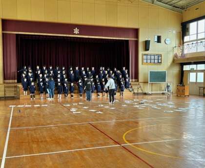 4月に新しく南百済小学校の仲間になる新1年生の入学式に向けて、現1年生がお祝いの練習に励んでいました。