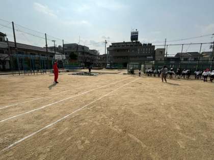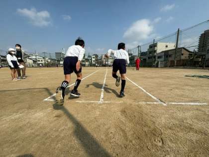 4日(月)2年生を対象に50m走ろう会を実施しました。順番を待つ列が長く伸びて、「よし、挑戦するぞ!」という2年生の意欲の高さがうかがえます。