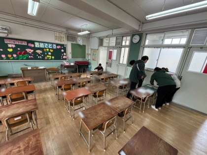 新6年生の児童が登校し、体育館をはじめ学校の隅々まで清掃をしてくれました。6年生のおかげで明日は素敵な入学式を迎えられそうです。