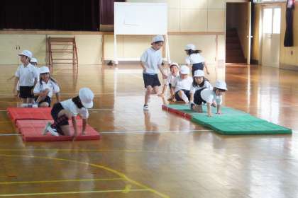 マットに横になりコロコロコロリと転がったり、赤ちゃんのようにハイハイしたり、アシカのように腕だけで進んだりしていました!!