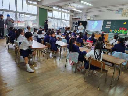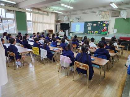 小学校に入学して最初の学習は「トイレの使い方」です。自席に座って、真剣に話を聞いている子がたくさんいます。