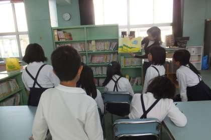 11月4日(水)、絵本の読み聞かせの様子です。今日は、学校図書館補助員の先生が読み聞かせをしてくださいました。今日のお話は「ブタ山さんがキャベツを食べたら」というお話で、子どもたちはとても楽しそうに聞いていました!!