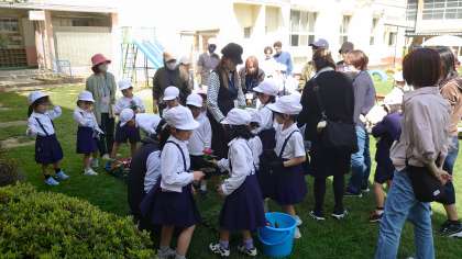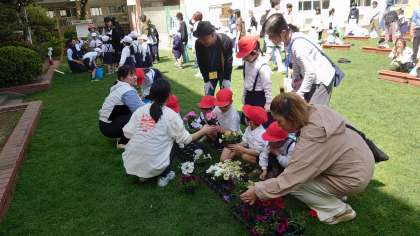 1年生は、中運動場で親子で花の苗を植える「花いっぱい活動」を行いました。