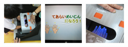 11月6日(金)、1年生が体重測定の前に「手洗い名人になろう」の実験をしました。
