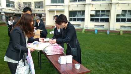 新入生のみなさんご入学おめでとうございます! PTAからは、お祝いとして紅白饅頭とノート3冊をお渡しさせていただきました。