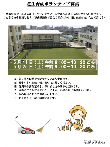 芝生育成お手伝のお願い
