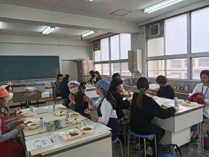 保健給食委員のメンバーが、子どもたちと同じように給食を運び、配膳して、参加者とみんなで美味しく頂きました!