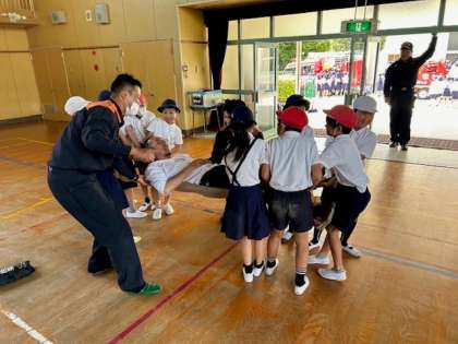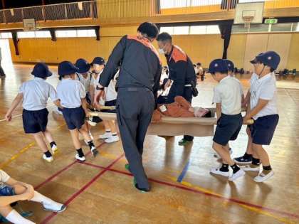 担任の先生を子ども達だけで搬送することに挑戦!すると、張り切る子ども達と不安そうだけど少し嬉しそうな先生の様子を見ることができました。