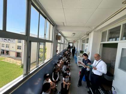 地震がきた時の避難訓練に続いて、津波対応の避難訓練も実施しました。