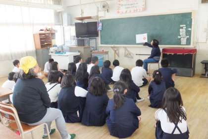 11月12日(木)、東住吉図書館のお話パレットさんをお招きして、「お話会」を実施しました。今日は4〜6年生で、明日は1〜3年生で実施します。