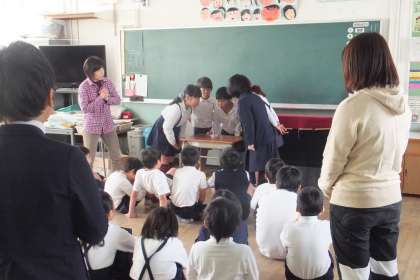 教室の電灯を消し、ロウソクをつけると心が静まり、パレットさんの優しい声でお話が始まりました。子どもたちは、少しあごをだし、だんだんお話に引き込まれていきました。 お話が全部終わると、子どもたちがロウソクを吹き消し、もとの世界へ。とても楽しい時間を過ごすことができました!!