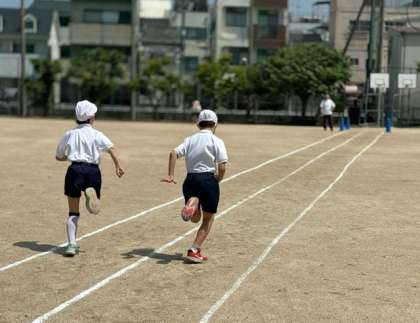4年生は、東運動場で50m走に取り組みました。自分の限界に挑戦して、新記録を樹立してほしいです。