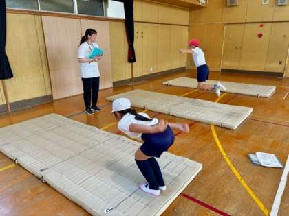 腕を振る時、上半身と下半身の使い方が意外と難しいようで、ちぐはぐな動きになる子がいますが、上手な友達の様子を見ながら一生懸命記録に挑戦していました。