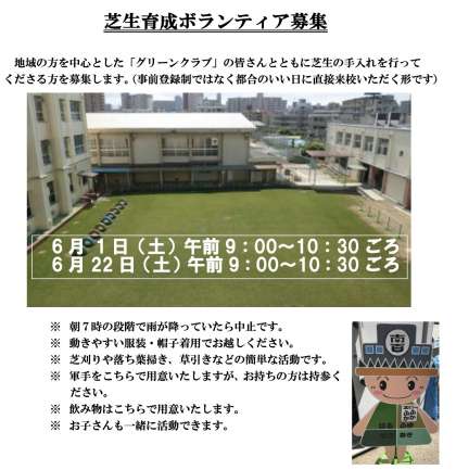 地域の方を中心とした「グリーンクラブ」の皆さんとともに芝生の手入れを行ってくださる方を募集します。