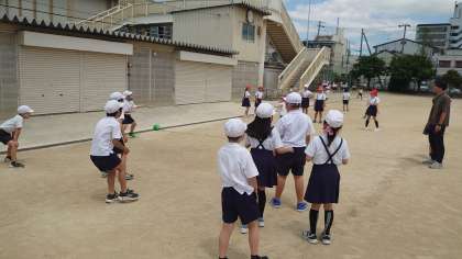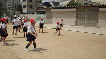 20分休み、4年1組は東運動場でドッジボールを楽しんでいました。