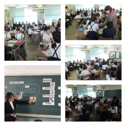 11月17日(火)、昨日、5年生で総合的な学習の時間を使い食育の研究授業を行いました。この授業には、東住吉・平野・阿倍野の3区の栄養教諭の先生が見学に来られました。