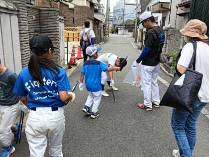 南百済ファイターズのみなさんが、ゴミ拾いをしているのを発見!! 午前中の練習後に、東運動場から南百済公園まで歩いて、地域をキレイにしてくれていました。ありがとうございます!