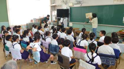 今日は1年生と6年生に楽しいお話を聞かせてくださいました。