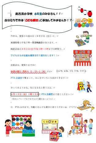 今年の前夜祭は、6年生の希望者で企画運営を行う「こども屋台」をします!!