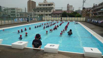 プールに入水しても、まっすぐ並んですっかり南百のお兄さんお姉さんです。