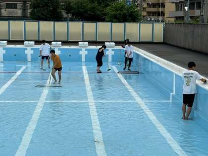 1日(月)放課後、教員でプール清掃を行いました。