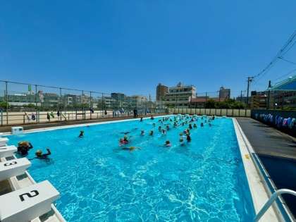 今日は天気が良すぎて(暑すぎて)プールに入れるか心配でしたが、午前中はプールに入ることができました。