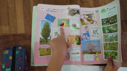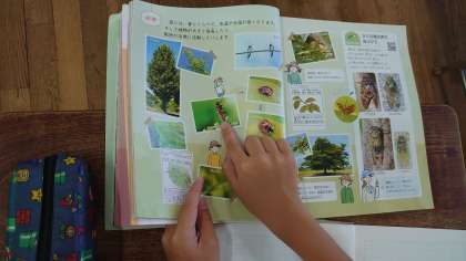今日の授業では、春と夏の自然の様子の違いについて学びました。夏になると、木々の葉が青々としている様子や幼虫の姿だった昆虫が成虫になったりとこれまでの生活の中で知っていることをたくさん発表していました。