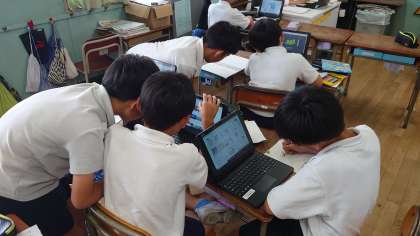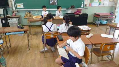 4年3組では、個人で台本を読む練習をしている子、グループで出し物の練習をしている子、様々でしたが、みんな楽しそうに時間を過ごしています。