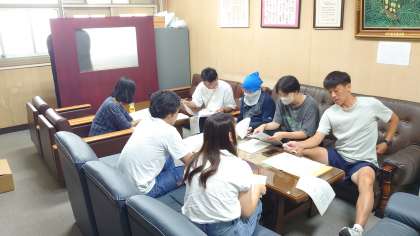 ハイキングや川遊び、キャンプファイヤーといったイベントはもちろん、宿舎での生活、バス移動の際のトイレ休憩などあらゆる場面での教職員の役割を確認していきます。