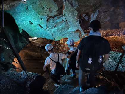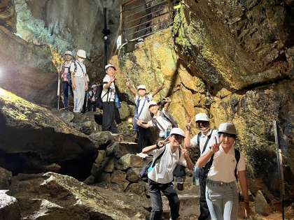 面不動鍾乳洞の見学。みんな元気で順調のようですね。