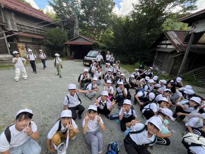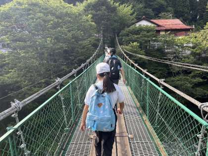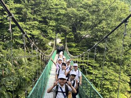 吊り橋の揺れもへっちゃらです。長い道のりでしたが、ゴールにたどり着いた5年生!ご苦労様でした。