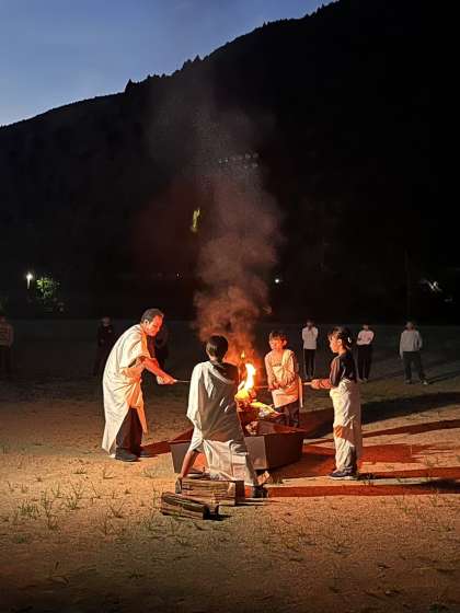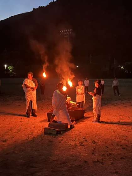 火の神から神聖な火の力を分けてもらい、いよいよ点火の儀式です。