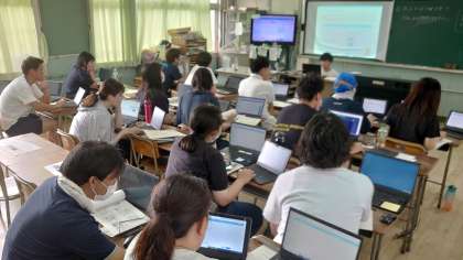 30日(火)外国語の研修を終えて、ICT研修を行い、授業で使えるICTの活用方法を学びました。