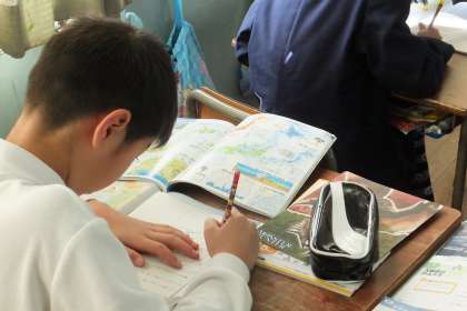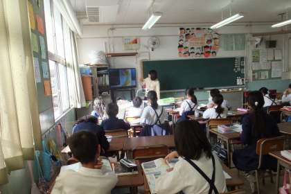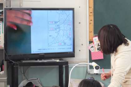 大阪府の地形を教科書や地図帳を見ながら調べました。また、大阪府には、33市9町1村があると知り、1村あることに驚いていました!!