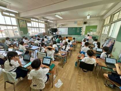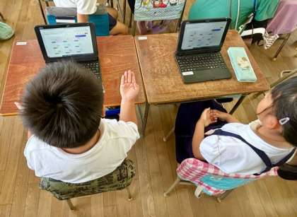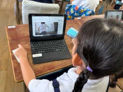 4日(水)1年生は初めて学習者用端末を使用して、担任の先生のパソコンにオンライン接続させるための練習をしました。
