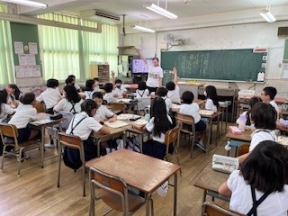 3年3組では外国語活動の時間、子ども達に人気のポインティングゲームに取り組みました。みんな集中して、先生の発する英語を聞いています。