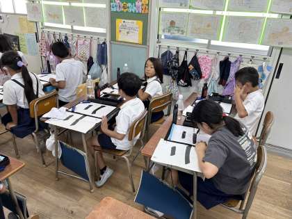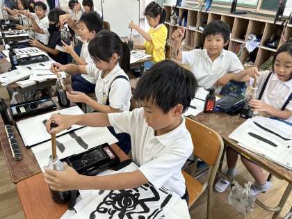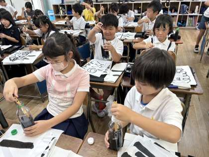 3年生初めての習字学習は手や服が真っ黒になる子がいるものですが、書けた字が上手で片付けも丁寧でした。優秀3年生の誕生です。