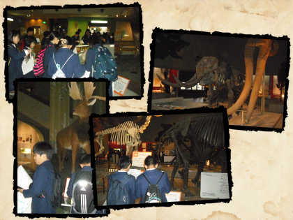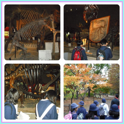 6年生は、今、理科で地層の学習をしているので、去年から自然史博物館へ見学に行っています。恐竜やナウマンゾウ、オオツノジカの化石もありました!!