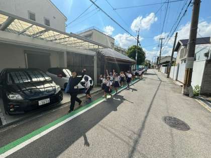道中は遠足気分で笑顔いっぱいの3年生です。
