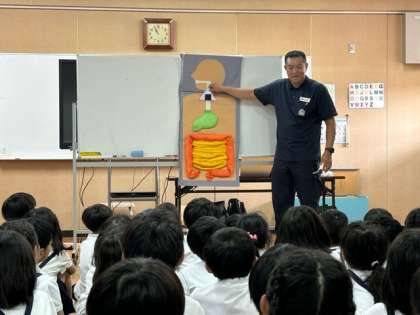 腸内を健康に保つために大切なことを学びました。冊子を頂いて持ち帰りますので、ご家庭でもお子様と確認してみてください。